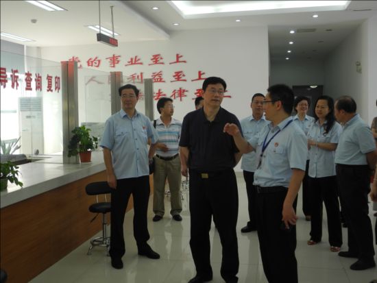 7月14日下午,秦淮区人大常委会王付荣主任一行19人来到秦淮法院调研红花法庭改革试点并听取法院上半年工作汇报。区人大常委会一行首先参观了“诉讼服务中心”和红花法庭,随后与法院相关人员进行了座谈。秦淮法院院长张敏全程陪同并作工作报告,金丹捷副院长、陈春副院长、王金海副院长、王迎新主任及红花法庭负责人参加座谈。