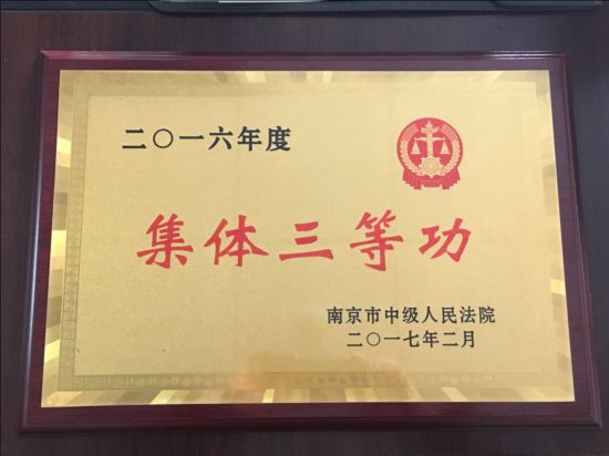 近日,秦淮法院民三庭荣获基层法院内设机构集体三等功,受到市法院表彰。