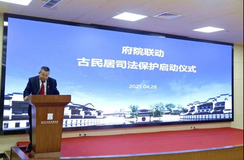 4月28日,秦淮法院与秦淮区文旅局在南京中国科举博物馆共同举办“府院联动 • 秦淮区古民居司法保护启动仪式”。江苏省高院民一庭庭长俞灌南,南京市中院副院长史俊,南京市中院民一庭庭长贡永红,南京市文旅局副局长颜一平,区委常委、宣传部长王赵海,区法院党组书记、院长周守忠,区文旅局党组书记、局长姜勇美以及其它20余部门的领导同志参加了启动仪式,会议由秦淮法院党组成员、副院长采飞主持。