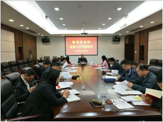 为持续推动法院党建工作深入开展,10月25日,秦淮法院召开了党建工作专题会议,会议由各支部书记参加,法院机关党委书记郭磊主持, 会上强调了十九大中习近平总书记对党建工作的要求,同时部署下一阶段党建具体工作。