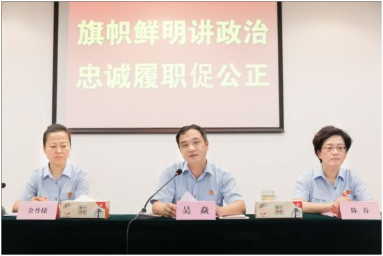 7月27日下午,秦淮法院召开全院“两学一做”学习教育党课暨半年工作总结大会。会议由党组副书记、副院长金丹捷主持。
