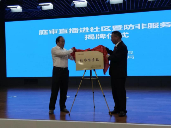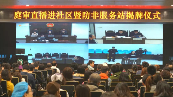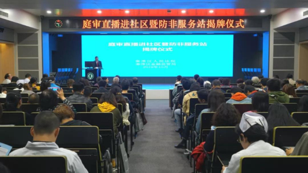 为进一步贯彻落实优化营商环境、优化社会治理法治环境工作要求,10月17日上午,南京市秦淮区人民法院“庭审直播进园区、进社区、校区”活动第三站来到夫子庙街道小西湖社区,与秦淮区地方金融监督管理局联合组织“庭审直播进社区”暨“防非服务站”揭牌仪式。秦淮法院副院长王金海,秦淮区金融监管局党组书记刘希德,全区各街道、社区“处非”工作负责人和群众代表及南京市第一医院职工共计约200余人参加了活动。
