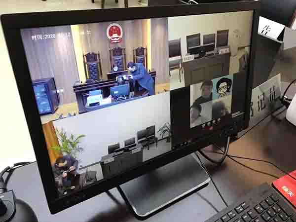 2月12日上午庭审前,法官、书记员和网管早早来到法庭,开展庭前准备工作。网管反复调试了音响、摄像效果,将互联网视频庭审系统与法院案件审理系统、庭审直播系统无缝对接。书记员为适应这一新型开庭模式,积极摸索、熟悉庭审开始、记录和结束的操作规程。