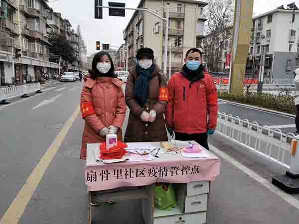 扇骨里社区是一个老社区,小区面积较大,租户较多,又无物业管理,随着全国假期返程高峰的到来,社区防疫管理工作难度非常大。2月2日起,秦淮法院增派9名党员突击队员进驻该小区进行支援。主动参与防疫工作,并将所有党员突击队成员安排到急难险重岗位上。