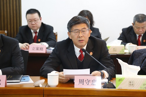随后,秦淮法院周守忠院长从“提高政治站位,依法护航全区高质量发展”“立足司法主业,全力维护社会和谐稳定”“深化改革创新,不断提升司法工作效能”“加强自身建设,全面打造过硬司法队伍”等方面,汇报了秦淮法院2020年主要工作情况及下一步工作打算。