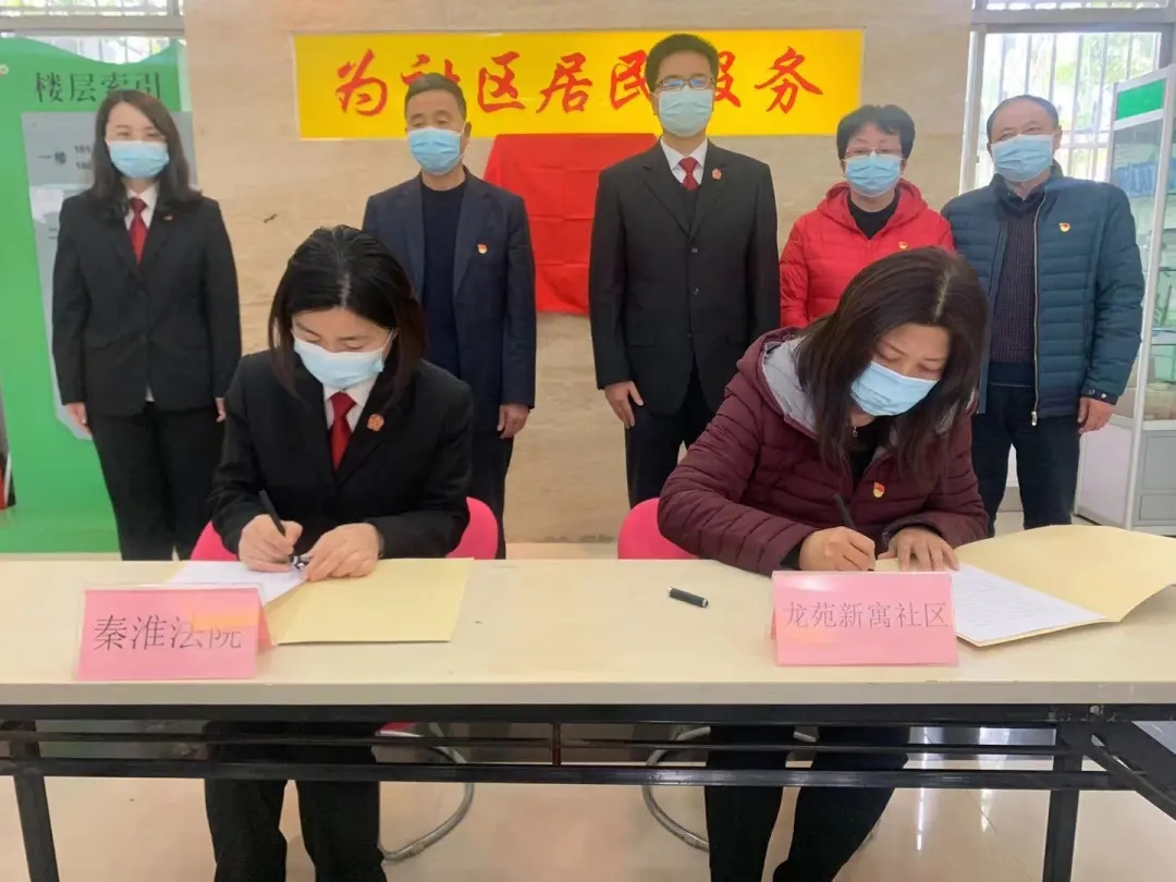 为创新推进“融入式”基层党建新模式,为社区百姓精准提供法律服务公共产品,协力维护辖区家庭安定和谐,秦淮法院少年家事庭党支部与秦淮区红花街道龙苑新寓社区党委联合签订《共建协议》,正式启动“护家先锋”特色党建品牌主题活动。