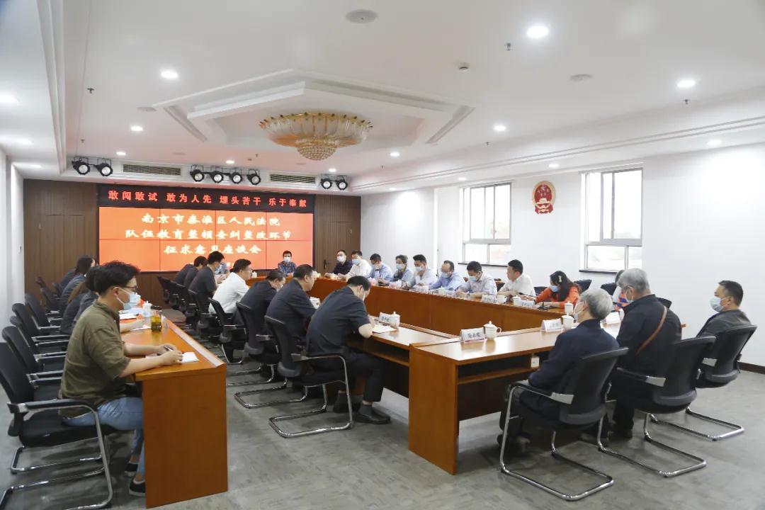 为推进队伍教育整顿工作走深走实,坚持“开门整顿”的工作要求,5月18日,秦淮法院召开队伍教育整顿查纠整改环节征求意见座谈会。会议邀请了人大代表、政协委员、企业家代表、律师代表、人民陪审员代表、群众代表等15人参加。会议由党组书记、院长周守忠主持,全体院领导、院队伍教育整顿领导小组办公室综合协调工作专班成员、查纠整改工作专班成员等同志参加会议。