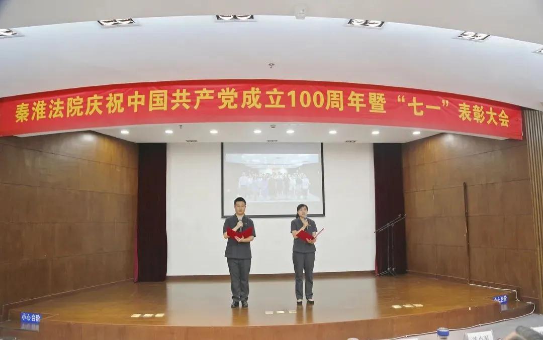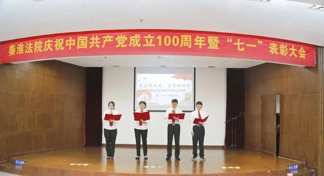 秦淮法院领导班子、全体干警和退休党员代表参会,大会在光华路院区七楼会议室设主会场,在光华路院区执行指挥中心和俞家巷院区二楼、三楼会议室设分会场。