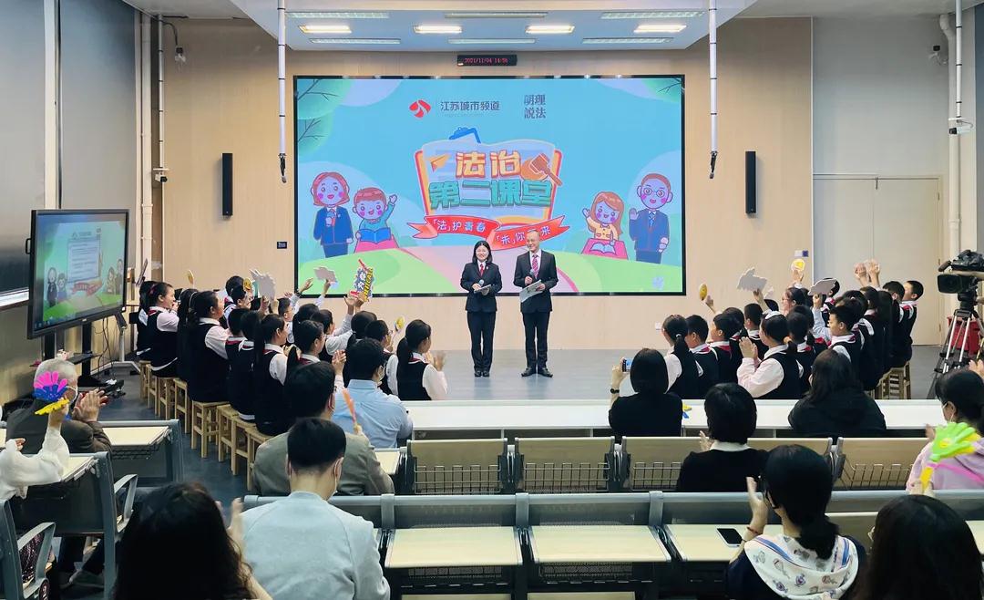 为进一步丰富和活跃“双减”政策实施后,学校延迟放学的“课后两小时”,继续完善基层法治教育的常态化、长效化运行机制,提升学校和家庭对青少年法治教育的针对性、时效性,满足辖区民众对高品质家校教育的需求,秦淮法院联合江苏城市频道、南京市游府西街小学,共同承办“法护青春 未你而来——法治第二课堂”校园普法首场活动。