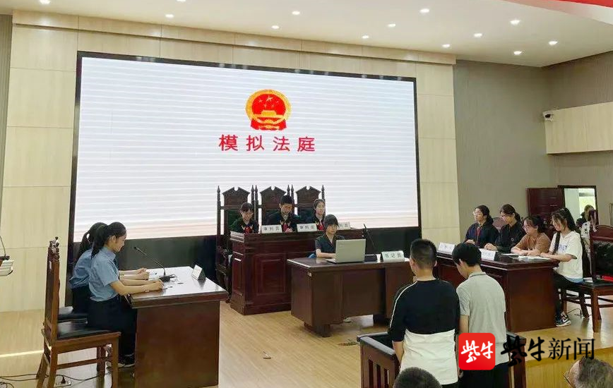 南师附中行知分校的17名学生,在现场通过模拟法庭的形式,再现了一起由真实校园伤害案改编的刑事庭审现场,整个模拟庭审过程在“审判长”的主持下按照法律程序有条不紊地进行。