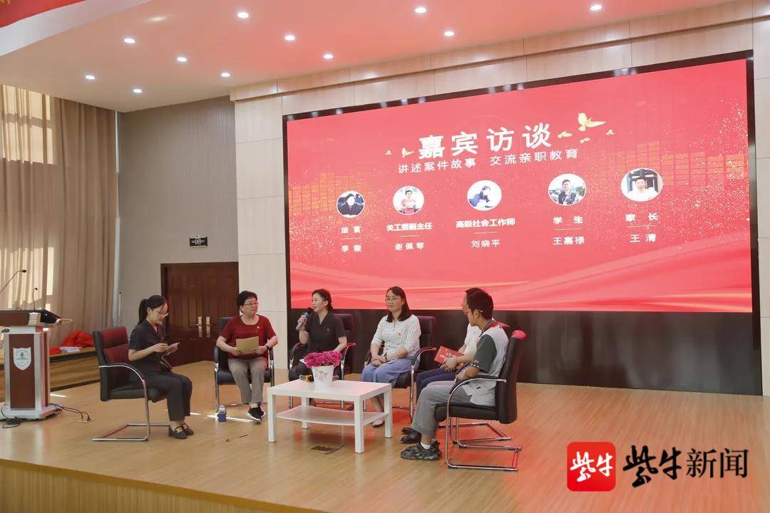 为了向现场师生深入普及法律知识、交流亲职教育观念,现场在法官的带领下组织开展了一场圆桌访谈。该案的原审法官通过讲述案件背后的故事,讲解未成年人保护法律制度;心理咨询师带领学生和家长,以校园伤害事件为切入口,共同探讨亲职教育的正确理念。五位嘉宾展开热烈讨论,对未成年人权益保护问题,提出了诸多建设性意见和建议。